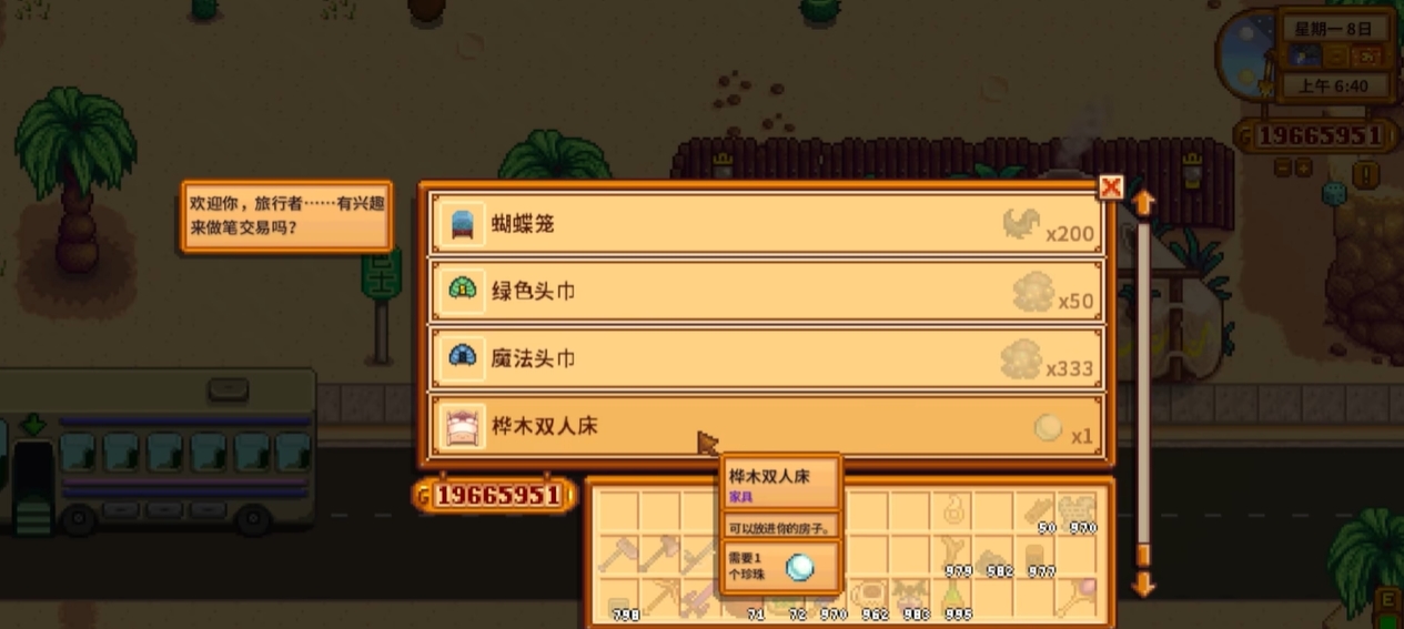 地狱是游戏内的高难度挑战区域,正式名称为骷髅洞穴的深层区域。要进入地狱,玩家需先解锁沙漠地图,并通过矿洞第120层后触发剧情。解锁沙漠需完成社区中心献祭包中的保险箱收集(需42500金)或通过Joja超市花费40000金购买会员服务修复巴士站。修复后,每天10:00至17:00可花费500金乘坐巴士前往沙漠。
